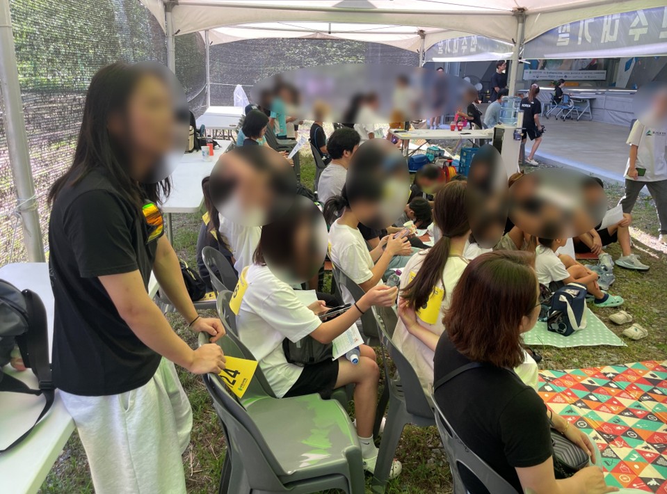 대회 시작 전 여학생, 남학생 팀별 운영 시간을 안내해 주시고