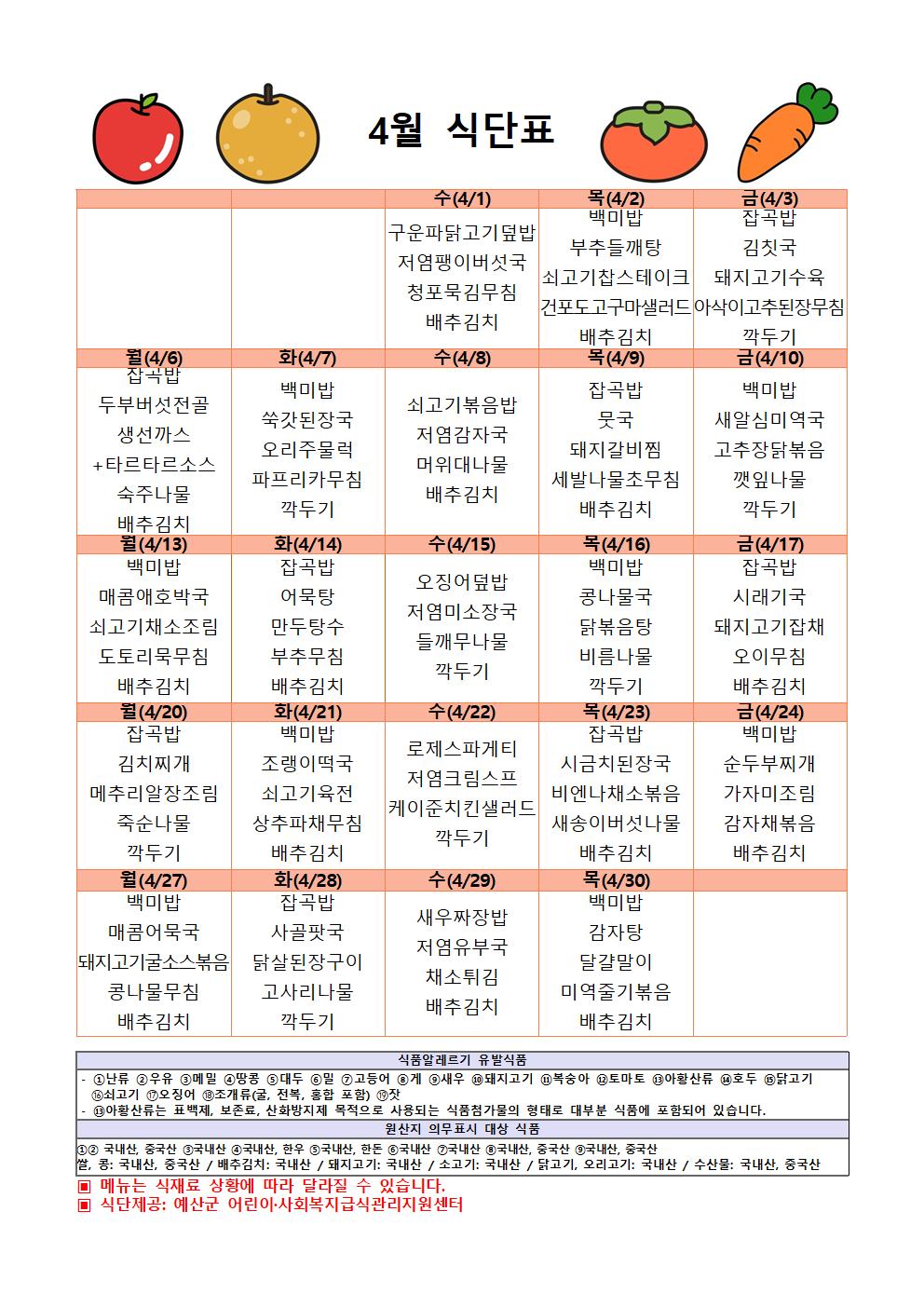 2026년 4월 식단